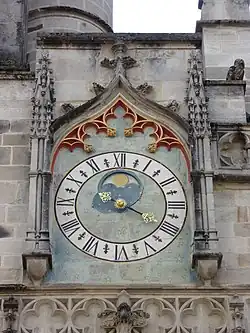 Ca de multe ori în Burgundia, acoperișurile catedralei sunt acoperite cu țigle vitrate în diverse culori, formând modele geometrice.