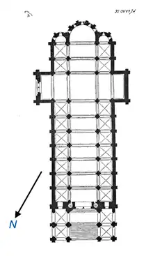 Navele centrală și laterale sunt cu boltă frântă, necontrabalansate la origine cu arce butante, făcând ansamblul foarte instabil. Acestea au fost adăugate în secolul al XIII-lea.
