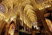 Catedrala din León este cunoscută mai ales pentru că a dus la extrem „dematerializarea” artei gotice, adică reducerea pereților la expresia lor minimă pentru a fi înlocuite cu vitralii colorate, constituind una dintre cele mai mari colecții de vitralii din lume din epoca medievală.