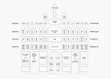 - Al doilea registru este compus din icoanele Praznicelor Împărătești cu icoana Cinei de Taină în centru.