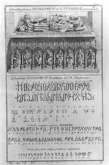 Figurile din piatră ale întemeietorilor Catedralei Sf. Ștefan din Viena, Rudolf al IV-lea și soția sa Caterina, pot fi văzute pe portalul de la intrarea acesteia.