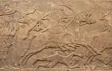 Fotografia alăturată arată cavaleria asiriană în basoreliefuri din 865-860 î.Hr. Pe atunci, călăreții nu foloseau pinteni, șa sau scăriță. A lupta călare a era mult mai greu decât simpla călărie. Cavalerii acționau în perechi: frâiele arcașului călare erau controlate de mâna vecinului său. Încă de pe atunci, cavaleria utiliza sabie, scut și arc.