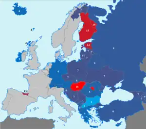 Numărul de cazuri în limbile europene. Limbile din ariile de culoare gri nu au categoria cazului.