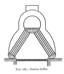 Cazanul produs de Yarrow avea o construcție simplă și distinctivă, care ulterior a rămas în general neschimbată. Trei tambure au fost dispuse într-o formație triunghiulară: un singur tambur mare de abur în partea de sus și două tambure de apă mai mici dedesubt. Tamburele de apă au fost legate de cel superior prin țevi drepte grupate în fascicule cu mai multe rânduri.