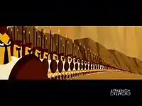 Jack se cațără pe un munte stâncos, sub cuvintele unui povestitor care se va înfățișa la sfârșit: regele. Jack găsește o crăpătură în munte, prin care abia încape un om, merge prin ea o jumătate de zi și ajunge pe un promontoriu, de unde vede o bătălie între o armată de oameni echipați ca grecii antici și una de roboți în formă de tauri. La un moment dat, conducătorul oamenilor este înconjurat de roboții taurini și Jack îi sare în ajutor.