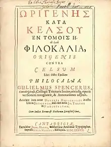 - Contra Celsum by Origen, Henry Chadwick, 1980, ISBN: 0-521-29576-9, page 32