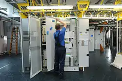 O centrală telefonică modernă, echipată pentru comunicații de voce și date.