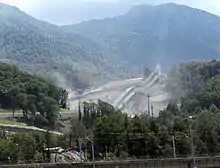 Construcția trebuia să dureze din 2009 până în august 2011. Totuși, în vara lui 2013 încă se efectuau lucrări majore de construcție iar întreaga zonă era acoperită de nori groși de praf. Deschiderea neoficială a avut loc la sfârșitul anului 2012 la o competiție de testare fără spectatori. Costurile totale de construcție ale centrului de sărituri se estimează a fi în jurul sumei de 50 de milioane de euro. În apropierea lui se află clădirea „Gorki Gorod”, unde va fi amplasată clădirea specială în zona montană pentru media.[1]