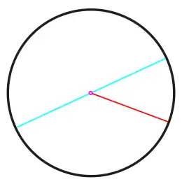 - Un diametru este o coardă care trece prin centrul cercului. Diametrul este compus din două raze coliniare, lungimea sa fiind de 2R.