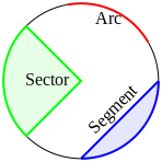 - Un segment de cerc este o regiune a discului delimitată de un arc de cerc și o coardă care au extremități comune.