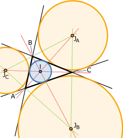 În geometria triunghiului, cercul înscris într-un triunghi și cercurile exînscrise unui triunghi sunt cercuri tangente tuturor laturilor triunghiului sau prelungirilor acestora.