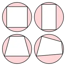 Nu orice poligon are un cerc circumscris. Un poligon care are unul se numește poligon înscriptibil. Toate triunghiurile, poligoanele regulate, dreptunghiurile, romboizii dreptunghici și trapezele isoscele sunt înscriptibile.
