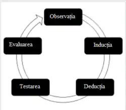 - Deducția: Formularea experimentelor care vor testa ipotezele (adică le confirmă dacă sunt adevărate, le resping dacă sunt false).
