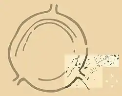Cuprinde o serie de trei cercuri concentrice de pământ și de țepușe de lemn (fără îndoială întărite, în vremea aceea, cu spini) fiecare cu 3 deschizături care coincid cu răsăriturile și apusurile de Soare la solstițiile de iarnă și de vară.