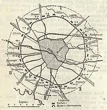 Cetatea București consta dintr-un sistem de 17 forturi dispuse circular, la o distanță de circa 20 de kilometri de centrul orașului București. Forturile erau prevăzute cu baterii de artilerie de cetate. Un număr de 18 baterii intermediare, împărțite în 3 sectoare, erau dispuse între forturi.[2]:pp 60-61