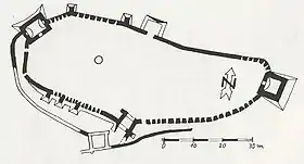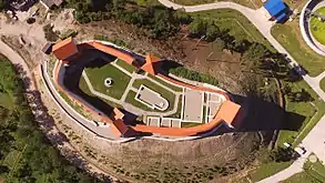 Cetatea din Feldioara ![]() Macheta ansamblului fortificaţiei cetaţii din Feldioara ![]() Planul fortificaţiei din Feldioara[2] | |