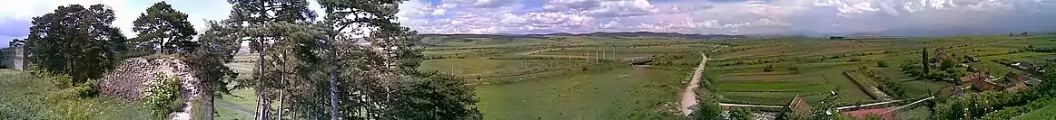 Pe malul stâng al Oltului se află satul Feldioara, la 17km nord de orașul Brașov. Conform cercetărilor arheologice teritoriul a fost locuit încă din neolitic, trecând prin epoca bronzului și cea a dominației romane care a lăsat situri importante de ceramică, sticlărie sau obiecte din aur, precum și un tezaur compus din 21 de monede romane. Descoperirea a cinci lingouri din aur ce au fost datate între anii 402 - 408 au dus la ipoteza folosirii lor ca tribut către populațiile migratoare din acele timpuri, probabil hunii.[3]