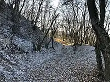 Ruinele zidului de piatră rămas au o lățime de 6 metri, o înălțime de 6,75 metri și au o deschidere de 1,9 metri x 1,3 metri care traversează zidul de piatră la o adâncime de 1,5 metri.