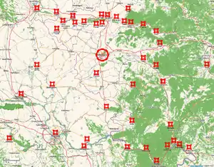 - h — moscheea Muradiemetschit (turcă Muradiye Camii[97]) = Moscheea Sultanului Murad al III-lea, aflată la capătul suburbiei, la vest.