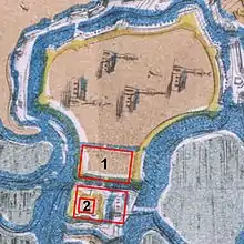 - b — moscheea Kilitsametschit (turcă Kilise Camii[97]) = Moscheea Bisericii, deoarece anterior fusese o biserică,[98] aflată în suburbie (L1);