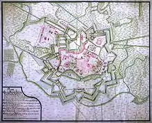 - Veduta lui Ottendorf cu cetatea otomană și harta lui Perrette