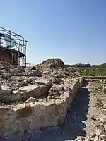 Peste cea de-a doua nivelare s-au găsit urme ale unui zid curbat pe conturul turnului și aflat la 1,2 m nord de acesta, cu o grosime de 80 cm și care se poate să fi avut rolul de zonă de acces în turn. Din el se păstrează fragmente până la o înălțime de circa 1 m. Resturile unul pavaj din bolovani mici de râu dovedesc că nivelul de călcare al incintei se afla peste un strat de mortar așezat peste stratul de nivelare din pământ nisipos.