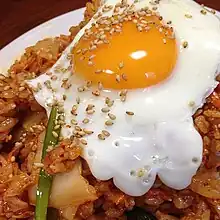 Kimchi chahan este pregătit cu kimchi ca ingredient principal și poate fi preparat cu un nivel variabil de iuțeală, în funcție de preferințe[3].
