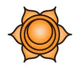 Swadhisthana, Svadisthana sau adhishthana este localizată în zona sacrală (de unde și numele) și se crede că este legată de testicule sau ovare, glande care produc diverși hormoni sexuali implicați în funcția de reproducere. Se mai crede că Svadisthana este legată de sistemul genital și de glandele suprarenale. Chakra Sacrală este simbolizată printr-o floare de lotus cu 6 petale, și corespunde culorii portocaliu. Problemele majore legate de Svadisthana sunt relațiile, violența, dependențele, nevoile emoționale de bază, și plăcerea. Fiziologic, Svadisthana guvernează reproducerea, mental guvernează creativitatea, emoțional guvernează bucuria, și spiritual guvernează entuziasmul.[14] |