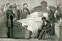 Bolnav de mult timp, Charles Sumner a murit în urma unui atac de cord la casa sa din Washington, DC, la , la vârsta de 63 de ani, după ce a servit aproape 23 de ani în Senat. Sicriul a fost depus la rotonda Capitoliului Statelor Unite(d),[102] el fiind al doilea senator (după Henry Clay în 1852) și a patra persoană onorată astfel. La înmormântarea sa de pe din cimitirul Mount Auburn(d) din Cambridge, Massachusetts, sicriul a fost purtat, printre alții, de Henry Wadsworth Longfellow, Oliver Wendell Holmes, Ralph Waldo Emerson și John Greenleaf Whittier(d).[103]