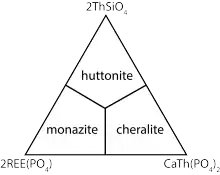Pentru conținut superior a 50% LREE, mineralere respective sunt clasificate drept „monazit”. Substituția huttonitică induce deviații pozitive de la raportul molar Th:Ca și conduce la prezența ionului silicat în compoziția chimică.