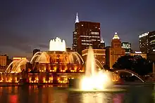 - Din aprilie până în noiembrie, la fiecare oră, timp de 20 de minute, din imensa Fântână Buckingham din Grant Park țâșnește apă. În special seara, când sunt iluminate nu doar jocurile de apă, ci și marii giganți care se înalță în spatele fântânii, priveliștea profilului orașului Chicago este spectaculoasă.
