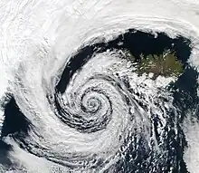 În meteorologie, un ciclon este o masă de aer pe scară largă care se rotește în jurul unui centru puternic de presiune atmosferică scăzută.