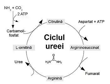 | 4 | argininosuccinat | arginină + fumarat | ASL | citosol |