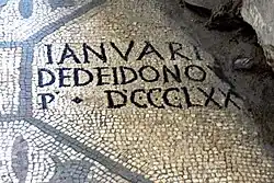 [din acest mozaic].„Eu, Ianuarius, am făcut o donație și dedicat 870 de picioare pătrate”