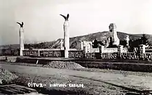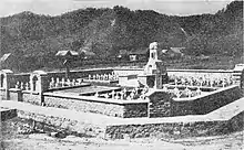 Stânga: interiorul cimitirului; dreapta: comemorare din 14 august 1935 | ||