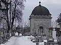 - Turnul clopotniței, prin care se accede în cimitir. Clădirea cu turnul clopotniței mai adăpostește o capelă, administrația cimitirului, camera paznicilor, toaletă, centrala termică.