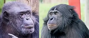 | Membrii genului Pan: cimpanzeu (stânga) și bonobo (dreapta) | |