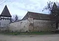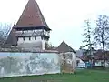 Biserica prezentând un turn la vest este ridicată în 1427. La jumătatea secolului al XV-lea este ridicată prima incintă și este adăugat un etaj de apărare deasupra corului. Acesta prezintă o galerie scoasă în exterior, rezolvarea fiind este de tip hourds, varianta în demiboisage consistând într-o structură de susținere din lemn completată cu paiantă [3].