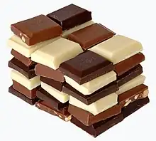 ![]() Ciocolata cel mai des apare în variații negre, cu lapte, și albe. | |