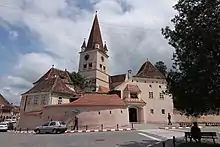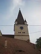În anul 1425 în Cisnădie a fost construit primul turn cu ceas din Transilvania. Acesta este înconjurat de 2 ziduri de apărare, cel interior având și încăperi pentru păstrarea proviziilor.