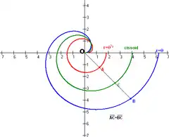 Cea mai simplă expresie folosește coordonate polare cu O ca origine. Dacă și exprimă două curbe, atunci exprimă cisoida.