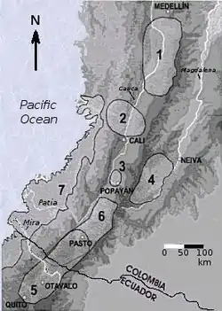 | Zonele ce corespund departamentelor moderne Quindío, Caldas și Risaralda din Columbia | |