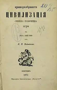 Într-o manieră comică cu motive folclorice, piesa ridiculizează modul în care valurile străine ale modei sunt percepute ca o evoluție a progresului uman. Aceasta este cea mai populară și cel mai adesea pusă în scenă piesă a sa, o operă fundamentală în arta dramatică bulgară modernă. Problemele discutate în ea au entuziasmat majoritatea figurilor Renașterii Naționale. Datorită actualității temei sale, Civilizația rău înțeleasă este jucată pe scenele teatrelor din Bulgaria până în prezent, la mai bine de o sută de ani de la prima publicare.[2]