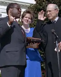 Audierea de confirmare a lui Thomas a fost lipsită de evenimente.[51] Senatul Statelor Unite l-a confirmat pe 6 martie 1990 și a primit comisionul în aceeași zi. A dezvoltat relații apropiate în timpul celor 19 luni petrecute la curtea federală, inclusiv cu judecătoarea Ruth Bader Ginsburg.[52][53]
