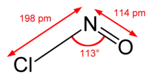 - NOCl se poate obține și direct prin combinarea clorului molecular cu oxid nitric; la temperaturi mai mari de 100 °C, reacția inversă este dominantă: