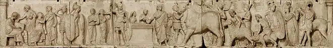 A fost probabil comanditarul altarului lui Domitius Ahenobarbus. Reliefurile par legate de construcția unui templu dedicat lui Neptun pe Câmpul lui Marte. Acest templu este dedicat zeului mării, în urma unei victorii navale, poate victoria obținută în largul insulei Samos între 129 î.Hr. și 128 î.Hr. Construcția sau restaurarea unui templu preexistent n-ar data decât din 122 î.Hr., anul în care Cnaeus Domitius Ahenobarbus a ajuns la consulat.[18][6]