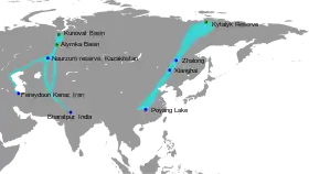 | Trasee de migrație, locuri de reproducere și iernare | |