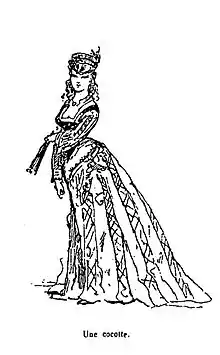 Termenul „demimondenă” desemna inițial femeile obișnuite cu purtări ușuratice și a ajuns, de asemenea, să desemneze cocotele de condiție joasă sau mai înaltă, numite și „Grandes Horizontales”.[1]