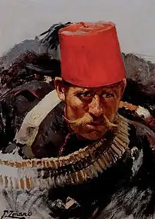 Fes | Coifură din fetru roșu în formă de trunchi de con. |