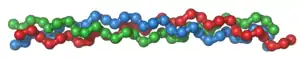 Colagenul este principala proteină structurală care se găsește în spațiul extracelular în diverse țesuturi conjunctive animale. Fiind principalul component al țesutului conjunctiv, colagenul este cea mai răspândită proteină din corpul mamiferelor, reprezentând aproximativ 25% până la 35% din cantitatea totală de proteine.[1] Structura colagenului este realizată prin împletirea a trei lanțuri polipeptidice helicoidale, care formează fibrile alungite.[2] Se găsește majoritar în țesuturi conjunctive fibroase, ca de exemplu în tendoane, ligamente și piele.